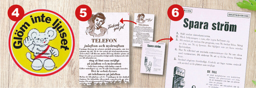 En föregångare till Energimyndigheten var Statens bränslekommission, som tillsattes 1917. I slutet av 40-talet rådde elransonering i Sverige och kommissionen skickade ut informationsbladet ”Spara ström”* till hushållen. Flera av råden är lika aktuella i dag: Släck belysningen i rum där ingen befinner sig, och Utnyttja ugnens eftervärme. Följande skrivningvittnar dock om allvaret: ”Har ni tillstånd att använda vattenvärmare får ni inte slösa med varmvattnet. Då riskerar ni att inte få ha denna förmån kvar.”